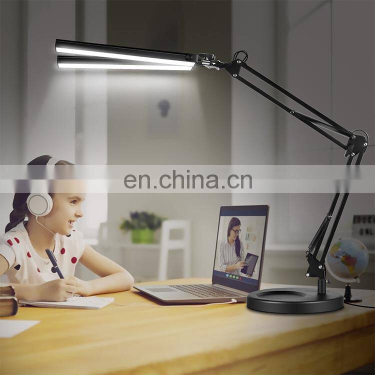 Swing Arm Desk Lamp With Dual Heads Reading Books Studying Office Night Light Table Lamp