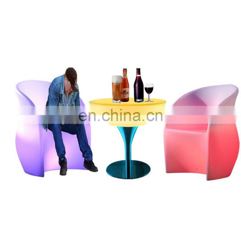 Plastic LED Bar Round Table for Coffee Shop Event Night Club Led Light Bar Stool Furniture High Cocktail Table Chair Set