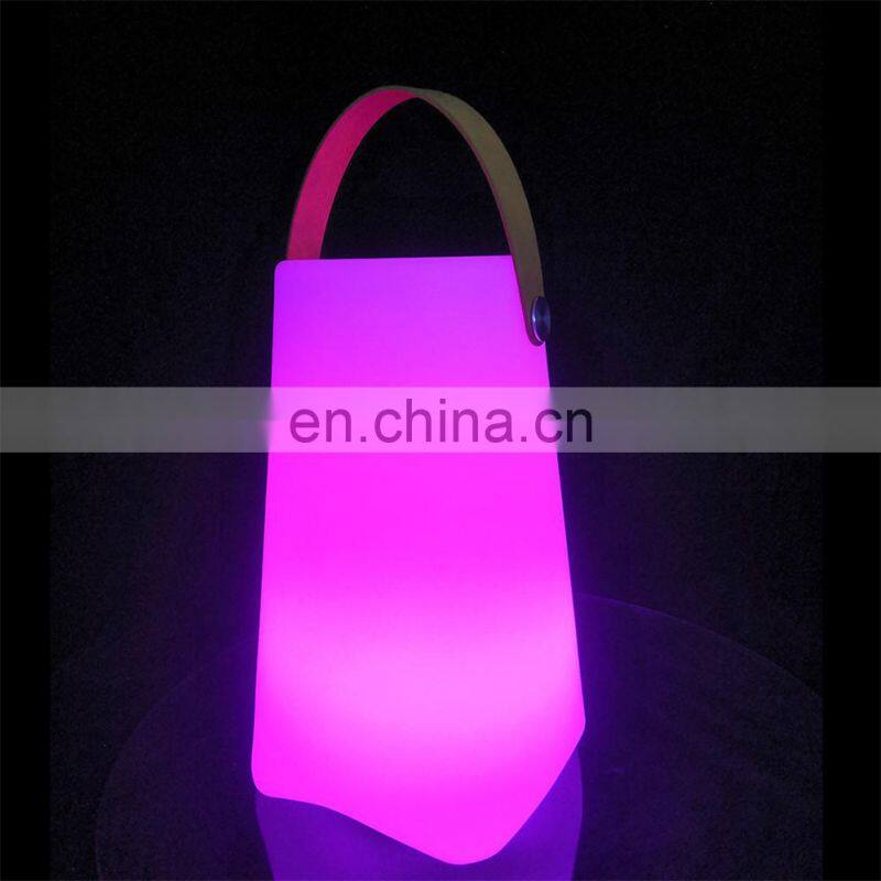 PU Leather Handle Rechargeable Cordless Mood Table Lamp Modern Music Wine Cooler Portable Lantern Plastic Led Light Speaker
