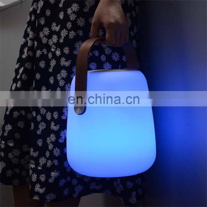 Wood Handle USB Cordless Mood Table Lamp Modern Smart Music Wine Cooler Portable Lantern Plastic Led Light Speaker With Light