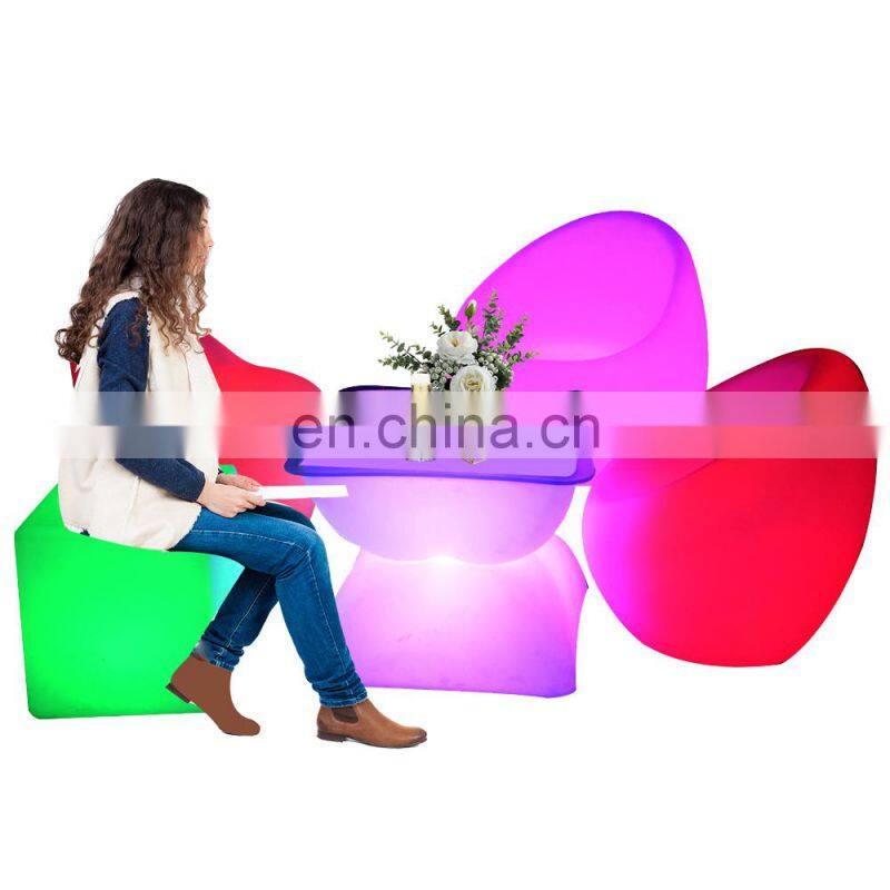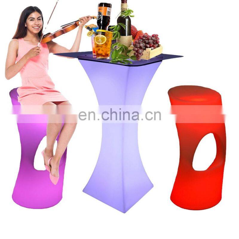 PE plastic Wireless rechargeable 16 color changing outdoor waterproof LED bar stool table chairs