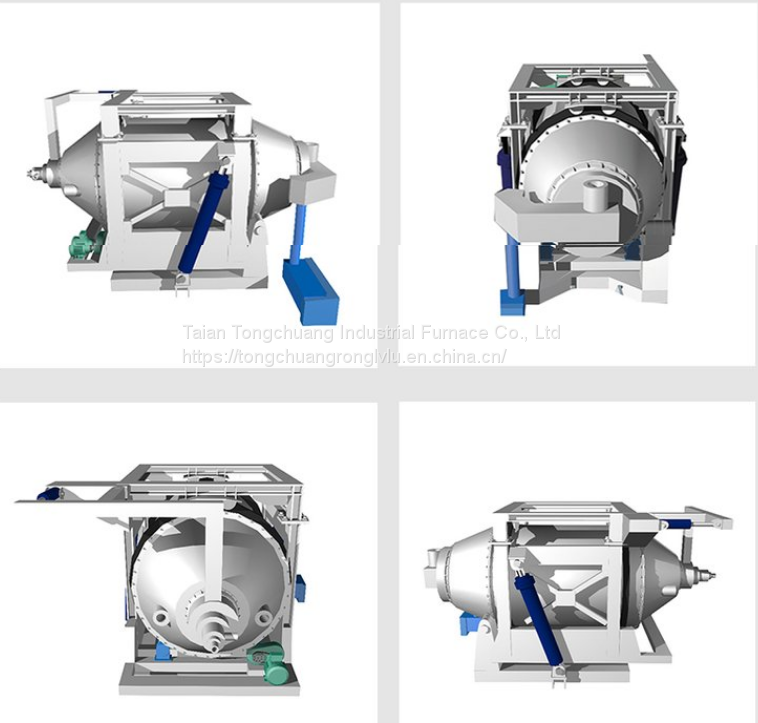 The furnace body of rotary furnace is installed on the rotating frame, which can make the furnace body tilt in a certain angle range under the action of hydraulic cylinder to realize the process action such as charging, melting and dumping out slag. At the same time, the furnace body can rotate around its axis under the action of the transmission mechanism; the rotary motion improves the heating efficiency of the furnace, which is important for the superheating of the molten iron.