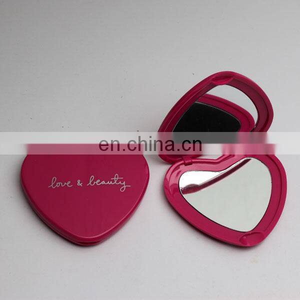 Customized Travel Double Side Folding Plastic Heart Shaped Compact Mirror