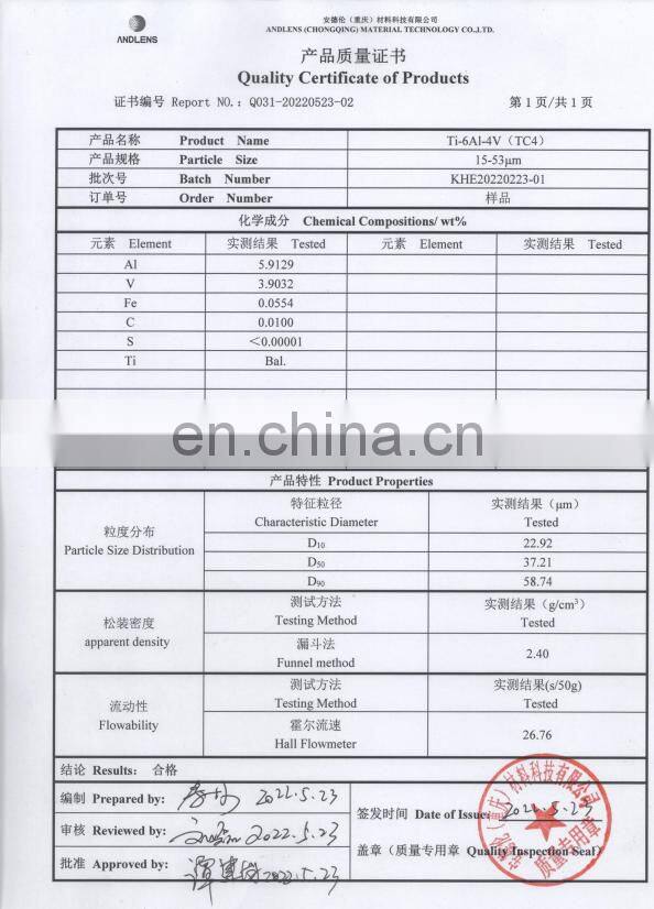 Factory Price Ti64 Gr23 Spherical Powder Metal Titanium Powder Price per kg Alloy Powder Printing Dmls Slm Ded Lens Technology