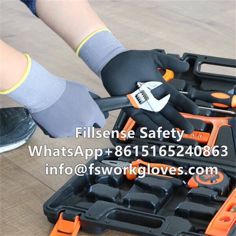 15Gauge Nylon Spandex Liner Nitrile Foam Coated Gloves Industrial Work Gloves Mechanic Gloves