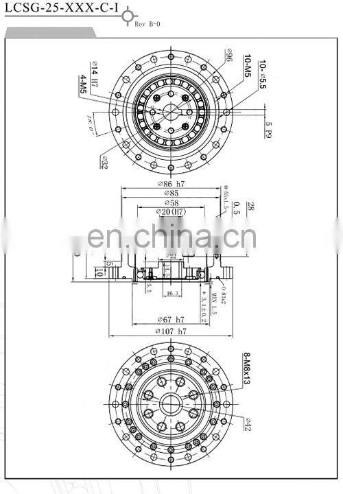 ③14: harmonic gear pitch circle diameter 14mm, all specifications code: 14, 17, 20, 25, 32, 40, 50, 58. |