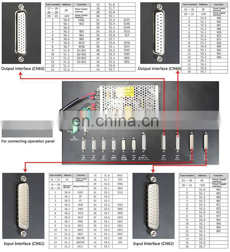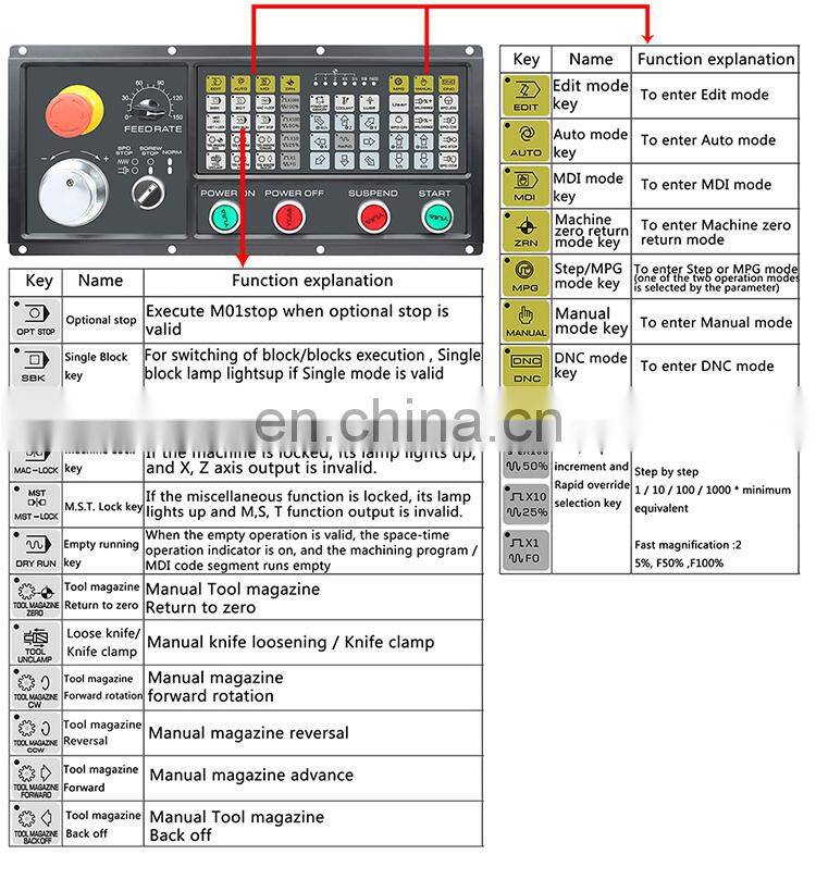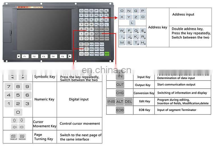 | Communications functions | RS232: parts program, parameters and other files two-way transmission, support PLC program, system software serial port upgrade |