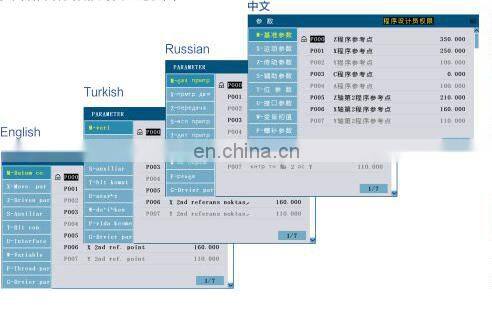 It can process single head / multi head metric and British straight thread, conical thread and end face thread; Variable pitch thread;Thread tailing length, angle and speed characteristics can be set, high-speed tailing processing; Thread pitch: 0.001mm ~ 500mm or 0.06 tooth inch ~ 25400 tooth inch, with tapping function |