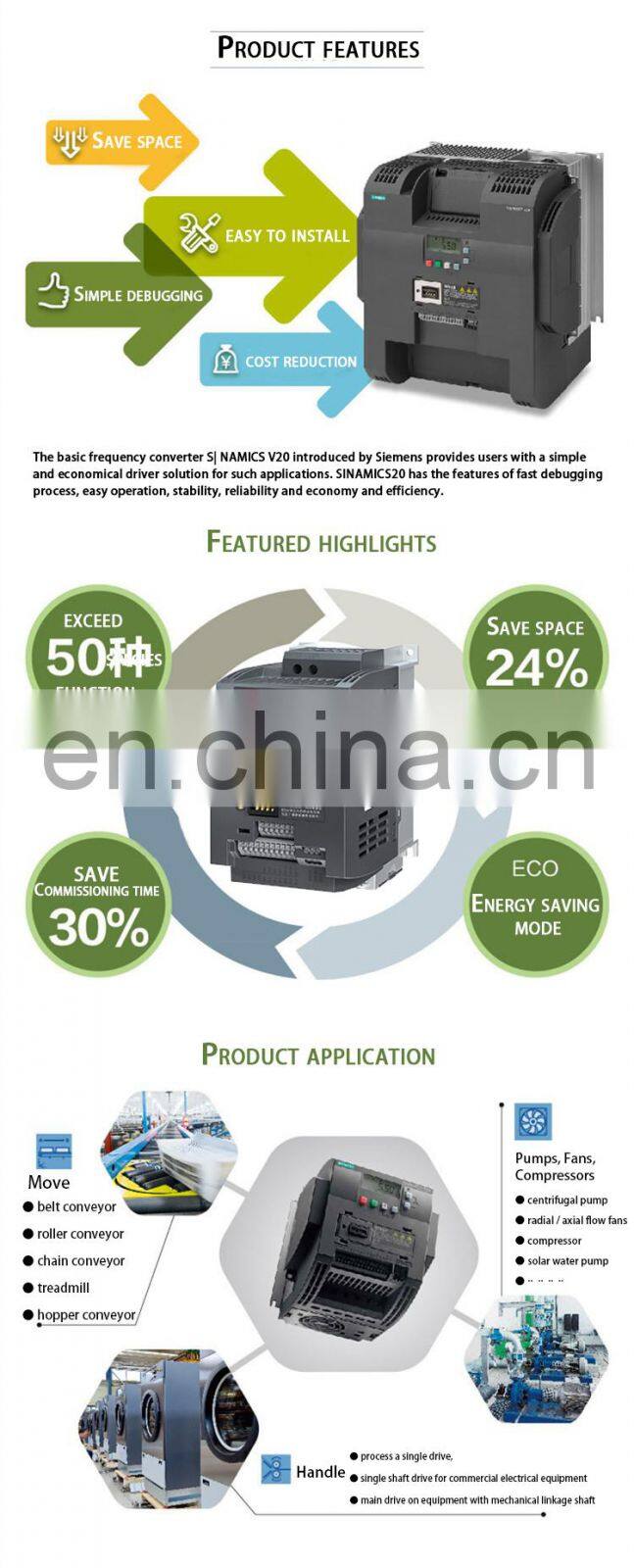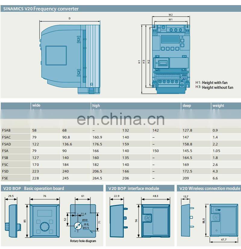 Siemens V20 Frequency Converter 0.37/0.55/0.75/1.1/1.5/2.2/3/4/5.5/7.5/11kw Siemens Frequency Converter