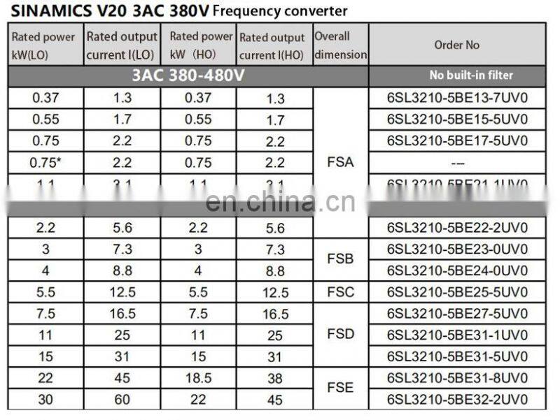 Home > Products > Frequency converter > Siemens V20 Frequency Converter 0.37/0.55/0.75/1.1/1.5/2.2/3/4/5.5/7.5/11kw Siemens Frequency Converter
