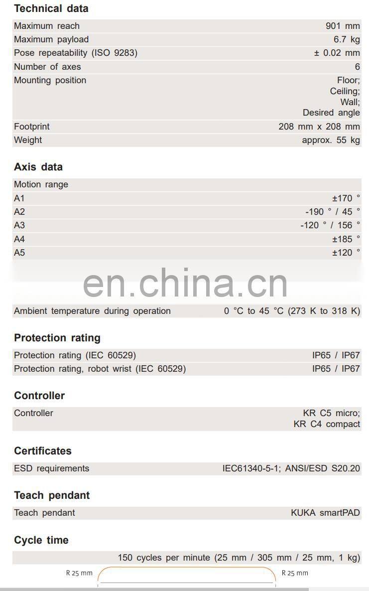 Sin Cos Tan KUKA 6R 900 Gas Arm for Monitor 6.8kg Payload Roboter Tool Changer Robot 6 Axis