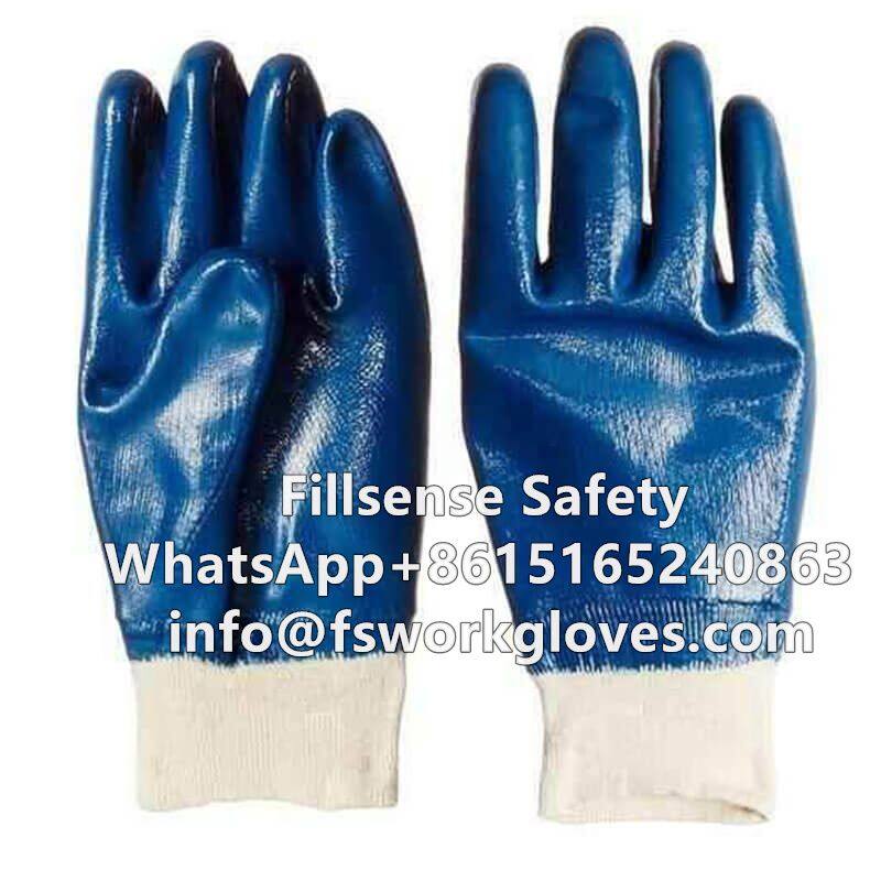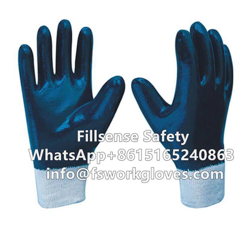 Knit Wrist Cotton Jersey Liner Half/Fully Coated Nitrile Gloves Heavy Duty Work Gloves Industrial Work Gloves