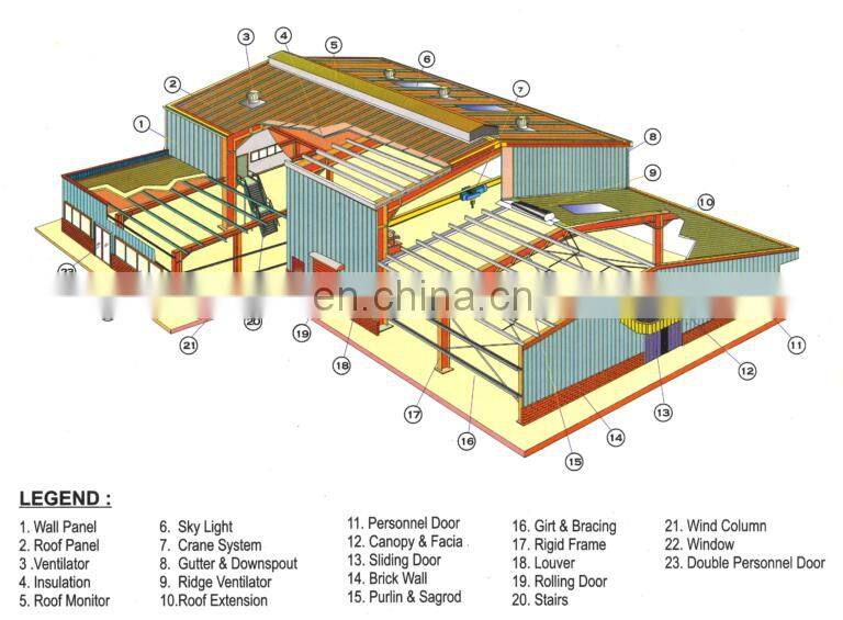 Applicable for factories, warehouses, office buildings, residential apartment, gymnasiums, hangars, poultry farm and so on. Not only suitable for single-storey long-span buildings, but also can be used for multi-storey or high-rise buildings.