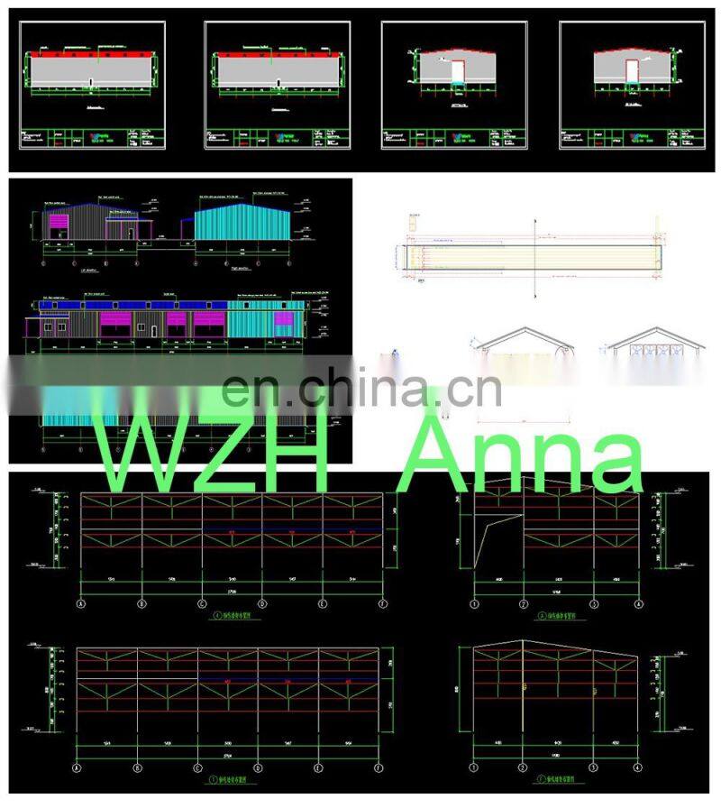 We have professional and normalized design team, through AutoCAD, PKPM, MTS, 3D3S, Tarch, Tekla Structures (Xsteel) and etc, we can design complex industrial building like office building, supermarket, shopping mall, apartment, retail shop, workshop, warehouse, chicken shed and so on. Professional working team have been the basement for us to devote ourselves to build a world brand "WZHGROUP".