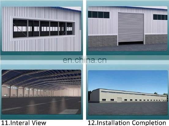 10) Roof and wall panel:Single colorfull corrugated steel sheet0.2 ~1.2mm thick, such as YX25-207-828 or sandwich panel :sandwich panel with EPS, ROCK WOOL, PU etc insulation thickness around 50mm~150mm, YX40-320-960 | ||