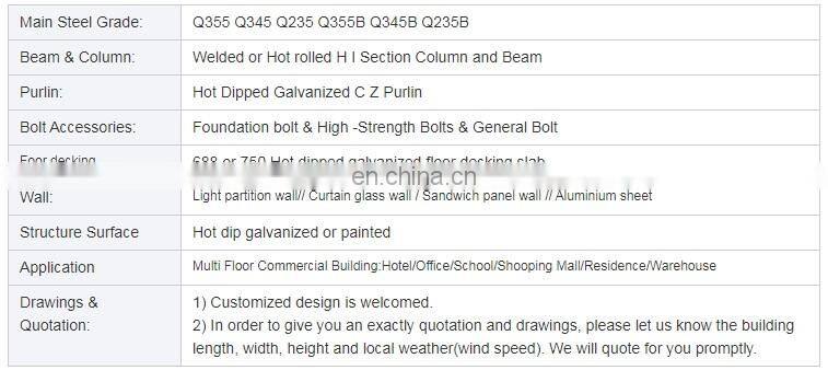 Steel Framed structure is mainly used in hotel office school,hospital, shopping mall,residential and exhibition hall,etc.