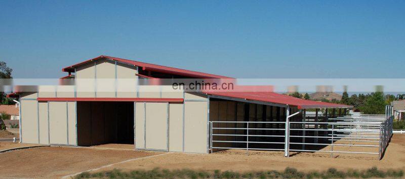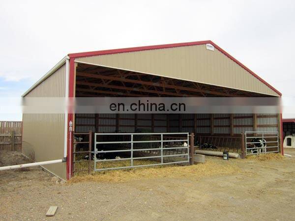 Steel structure cow sheds, poultry farm house is made of light weight steel structure, it's widely used for the chicken, sheep, cow, etc. The roof can be made of corrugated steel sheet or sandwich panel which has good insulation performance. The wall is built with steel mesh or sandwich panel. Both the wall and the roof have contributed to ensure an excellent insulation performance, therefore the shed is very resistant to wind, impact and climate change.