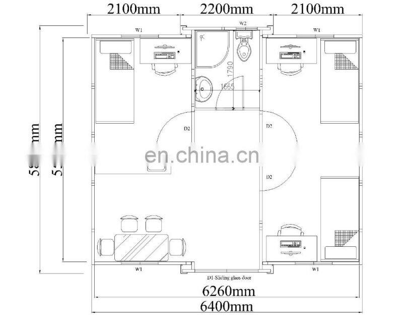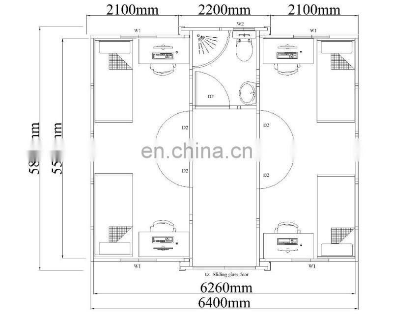 Standard 20ft expandable container house is 8 windows and 1 bathroom window , 1 PVC double sliding glass door , 1 bathroom door , 1-4 bedroom door as house layout request .