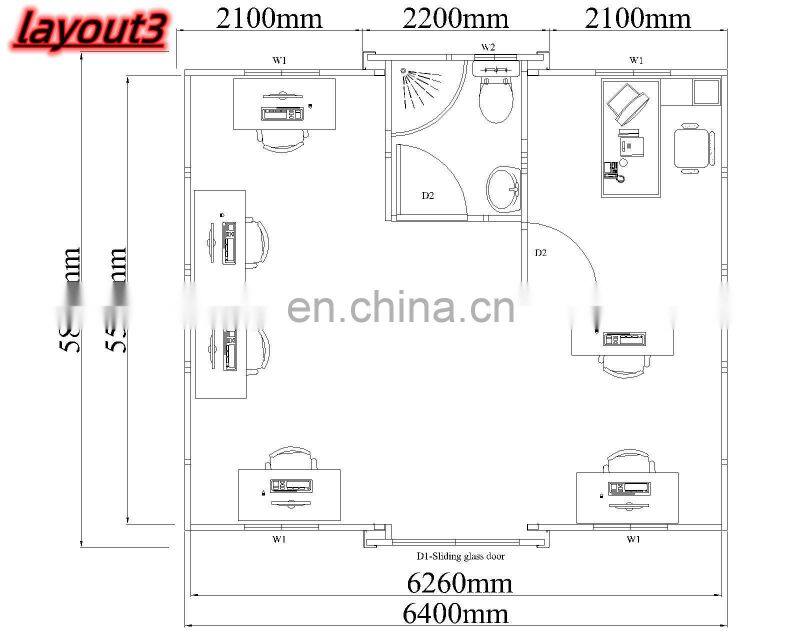 Advantage | (1) Fast installation: 2 hours/set, save labor cost; (2) Anti-rust: all material use hot glavanized steel; (3) Waterproof: without wood ceiling,wall; (4) Fireproof:Fire rating A grade (5) Simple foundation:just need 12pcs concrete bolck foundation; (6) Wind-resistant(11 level) and anti-seismic(9 grade) |