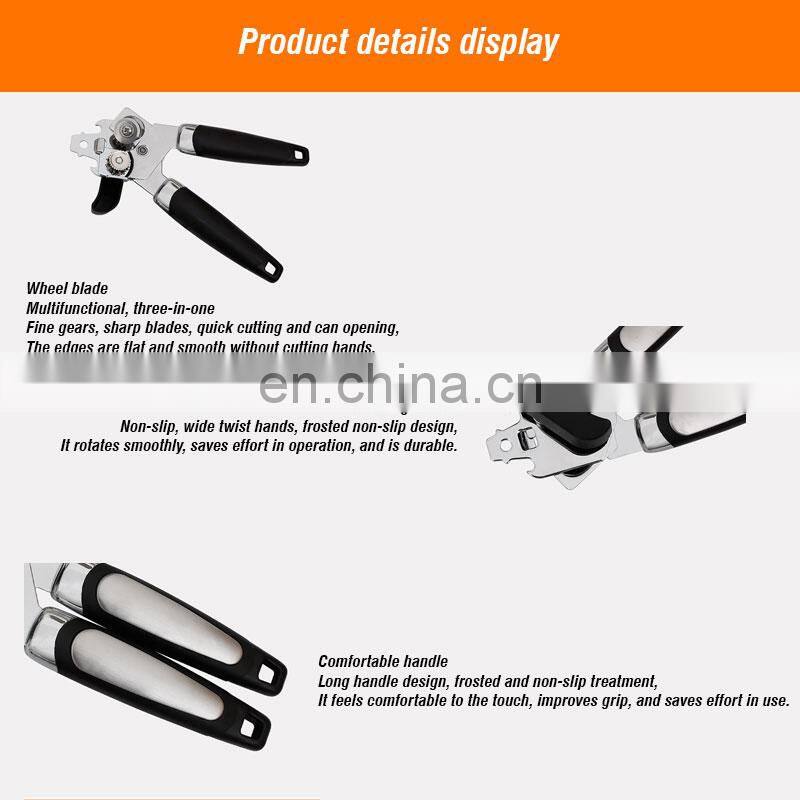 2. 3-in-1 Manual Can Opener: Can Opener, Tin Cutter, Jar Bottle Opener, easy to help you open tough bottle cap and easily breaks through tight plastic seal on jar, especially in elderly hands For.
