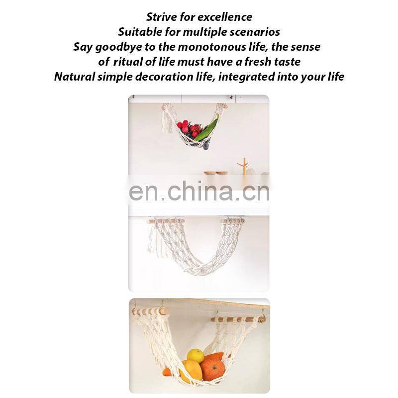 New 2022 Storage Kitchen Basket Wood Macrame Hanging Fruit Hammock Under Cabinet
