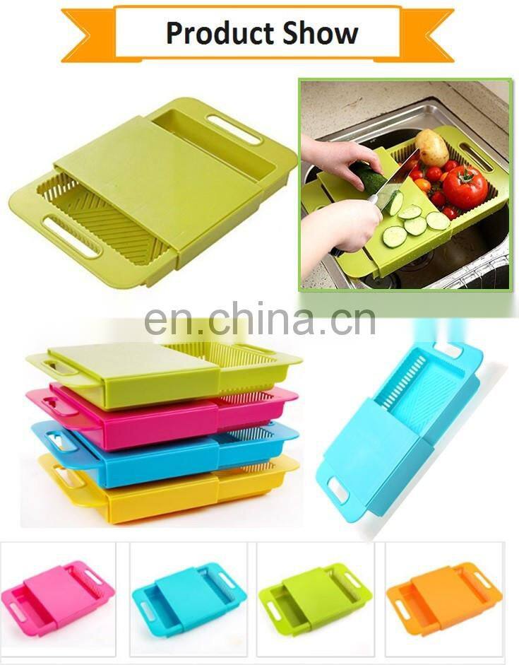 The lower bunk, one drop, one storage; Cutting board can be moved!With handle, handle anti skid set, on the sink to use, very convenient.