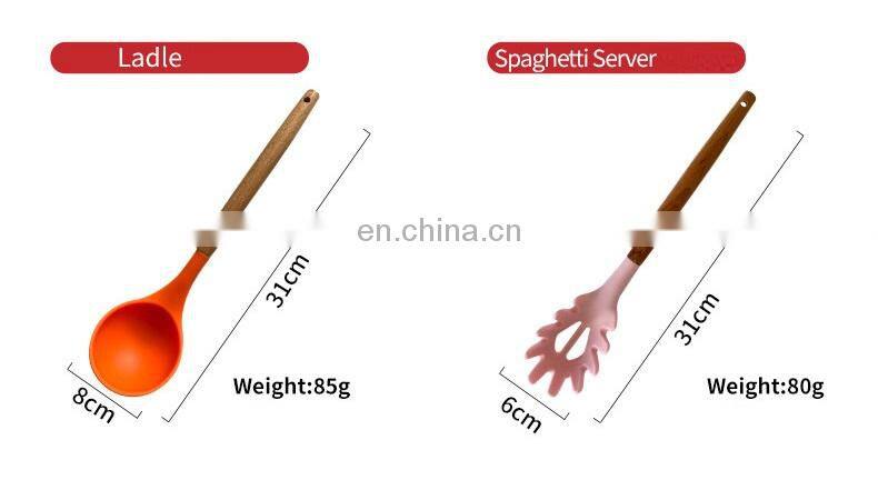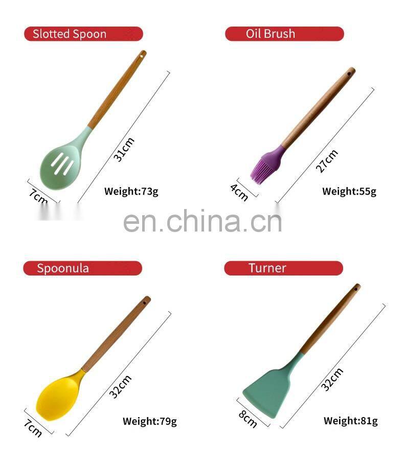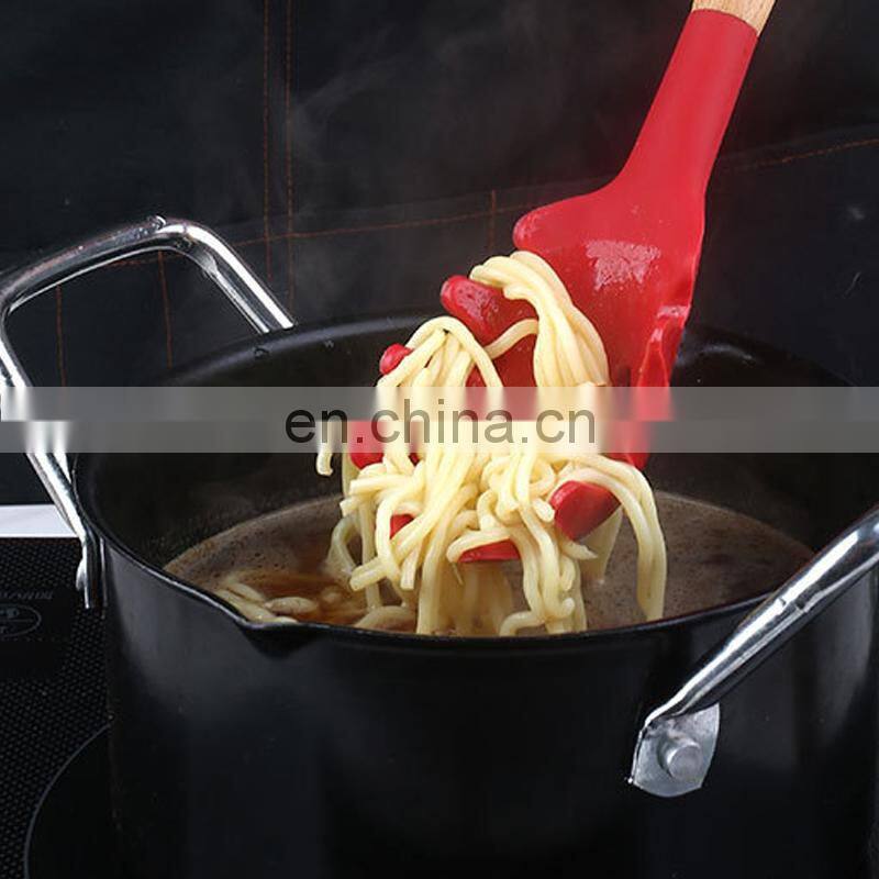 Multicolor BPA Free Non Toxic Wooden Handle Turner Tongs Spatula Cooking Silicone Kitchen Utensils