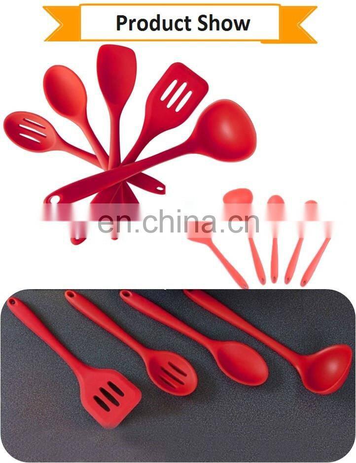 3. INCLUDED IN THE BOX: Spatula, Slotted Turner, Spoon, Spaghetti Spoon, Soup Ladle. Everything you need for cooking is included. They all come with slots for hanging.