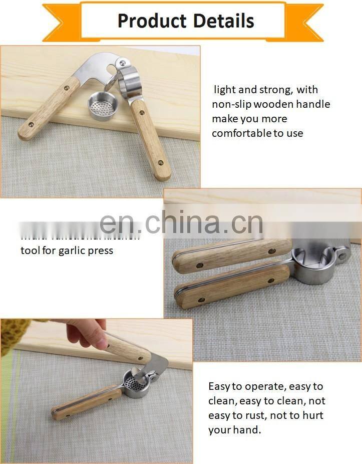 Hot Sale Stainless Steel Garlic Press With Wooden Handle