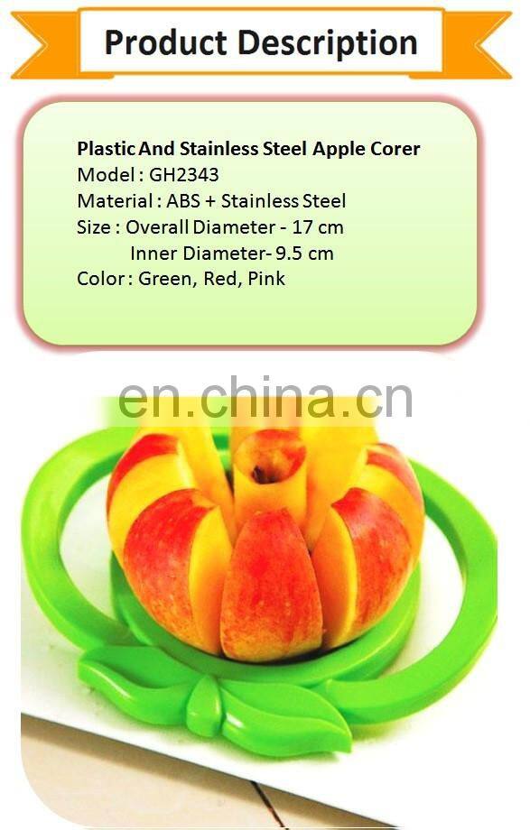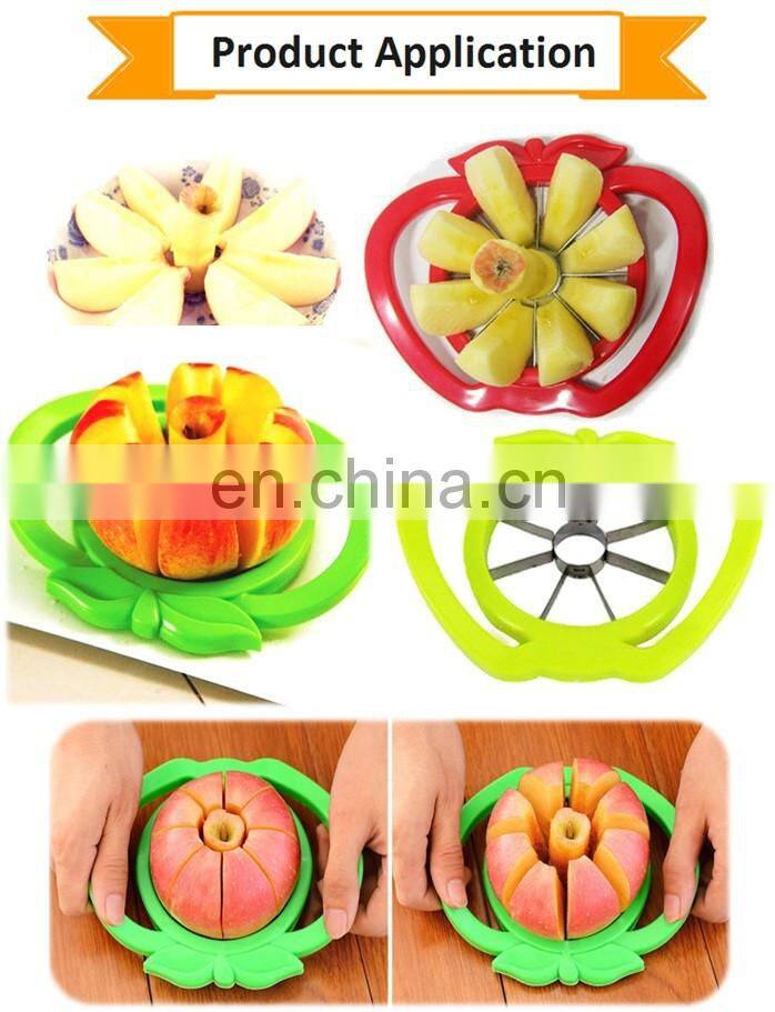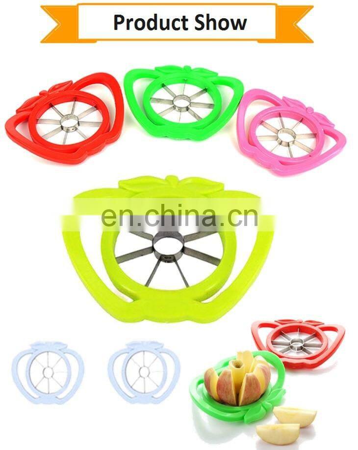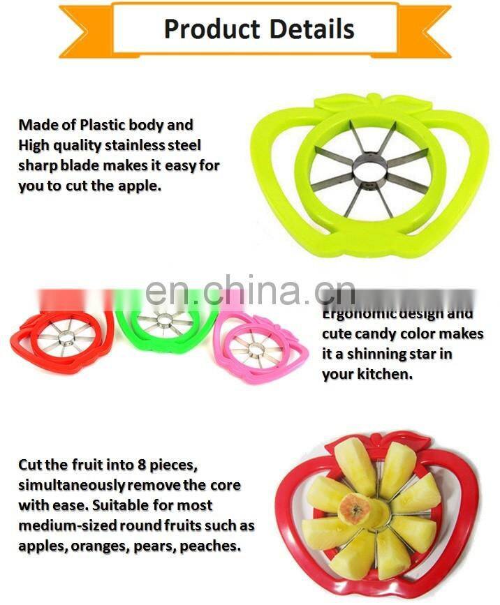 Feature: | Made of Plastic body and High quality stainless steel sharp blade makes it easy for you to cut the apple. |