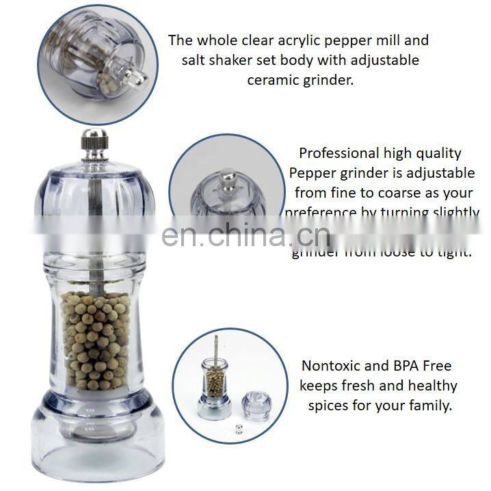 2 in 1 Stainless Steel With Adjustable Ceramic Grinding Mechanism Clear Acrylic Body Salt And Pepper Grinder