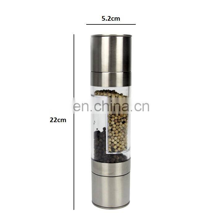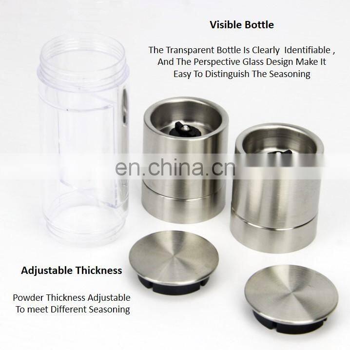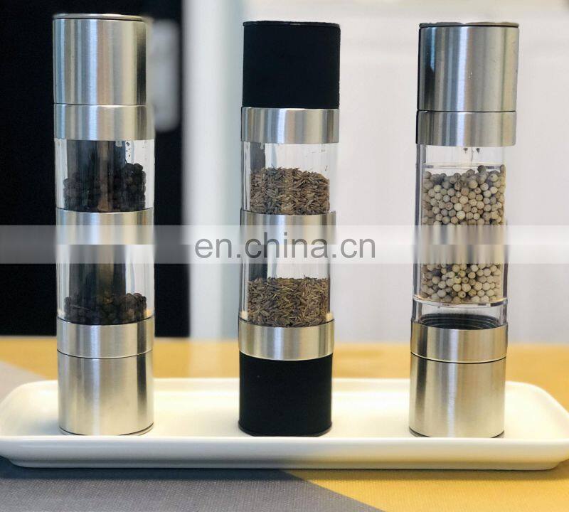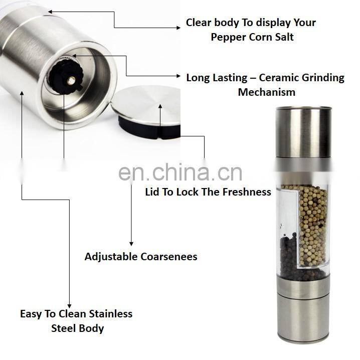2 in 1 Stainless Steel With Adjustable Ceramic Grinding Mechanism Clear Acrylic Body Salt And Pepper Grinder