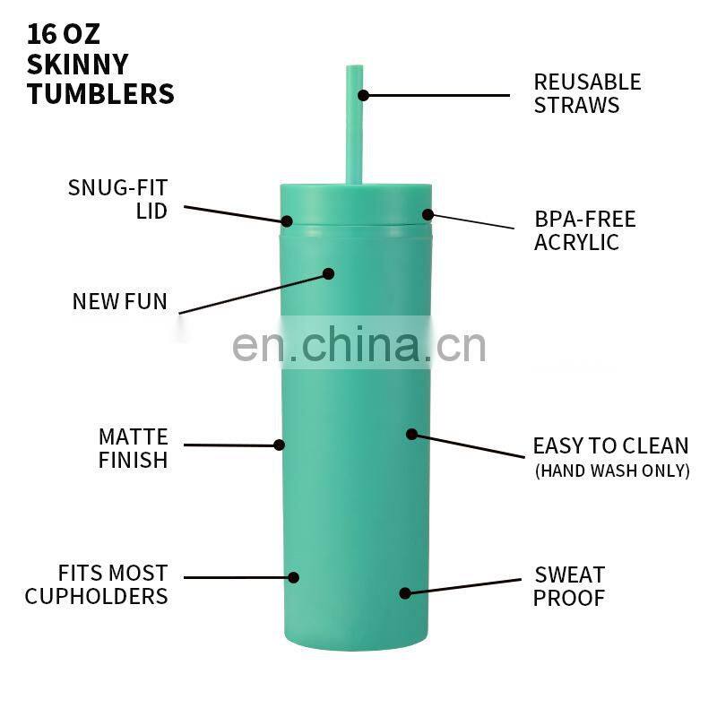 Unique Custom Printing 16oz Personalized Sport 2022 Drink Wholesale New Travel Black Plastic Skinny Tumbler