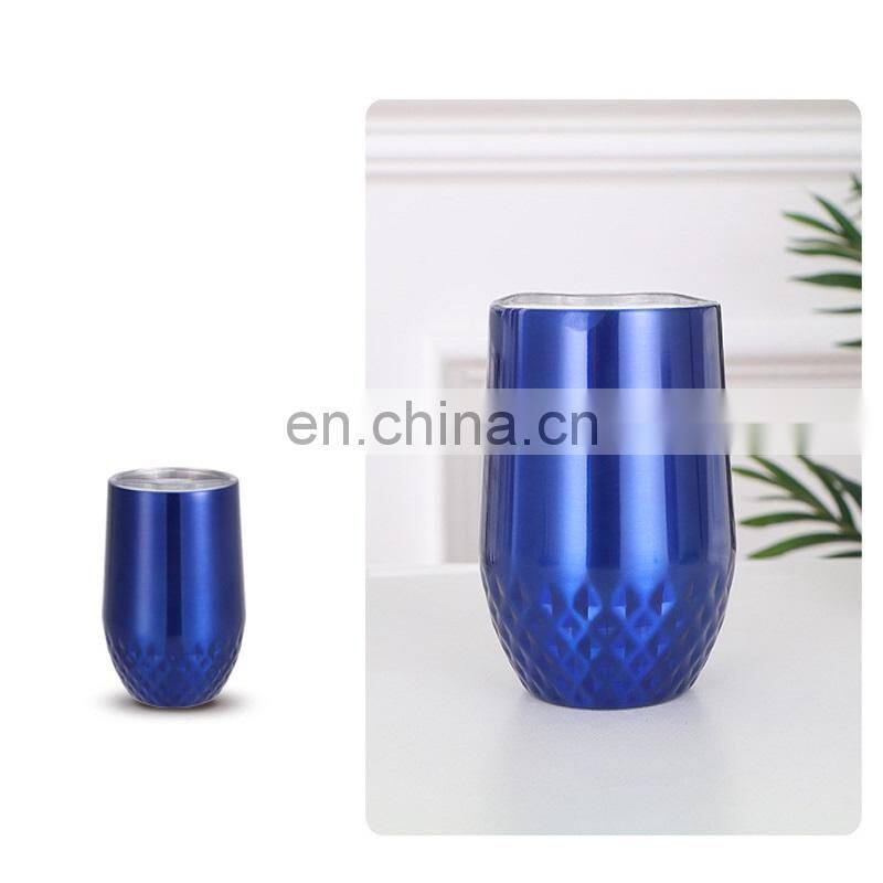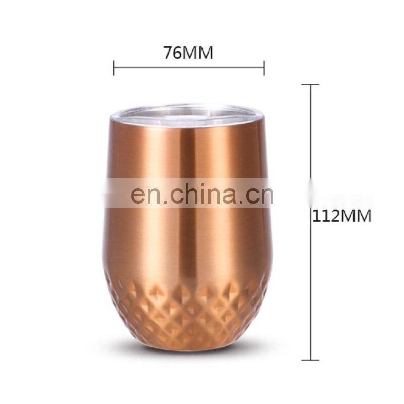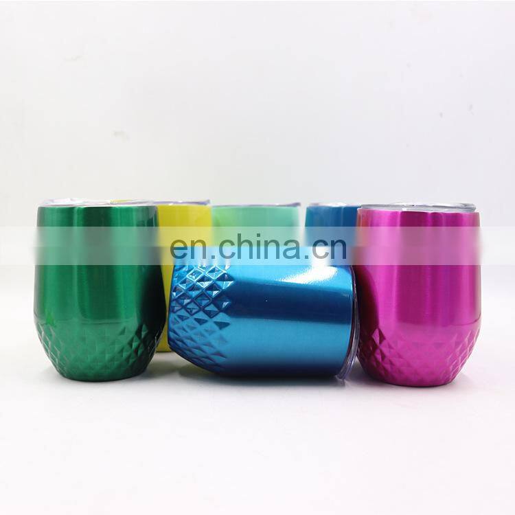 12oz Double Wall Stainless Steel Diamond Eggshell Wine Tumbler Cup
