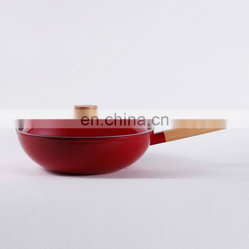 2021 Round Cookware Frying Wooden Handle Iron Mini Full Seasoned Non Stick Wok Pan