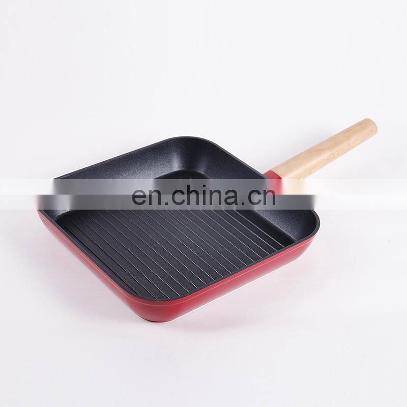 - High Quality Cooking Cookware Round 19/21/23/25/27/29 cm Cast Iron Steak Plate Sizzling Grill Pan Wooden Tray Set
