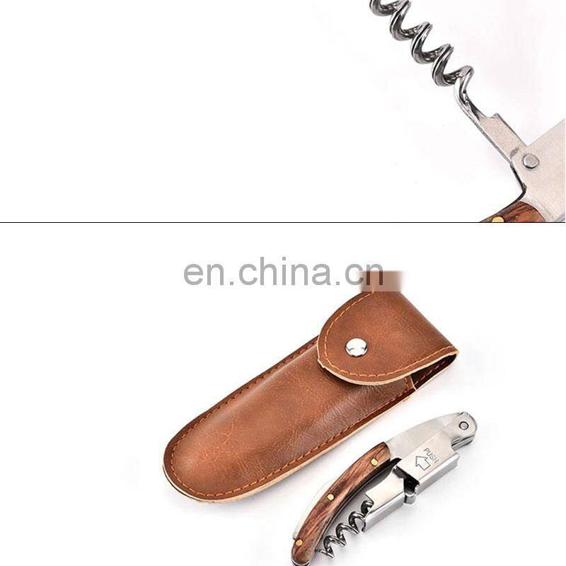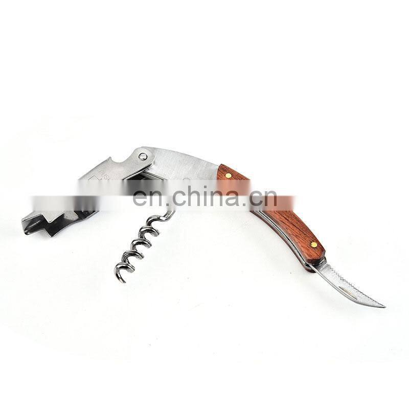 Multifunctional Champagne Stainless Steel Engraved Knife Custom Wooden Red Corkscrew Wine Opener