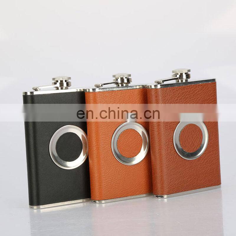 Custom Engraved Logo Ladies Portable 8oz Metal Stainless Steel 6oz Leather Hip Flask