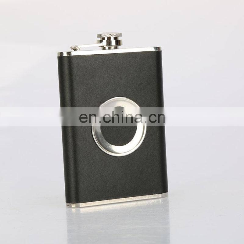 - Portable Alcohol Stainless Steel Whisky PU Leather 8oz 6oz Matt Engraved Black Big Hip Flask