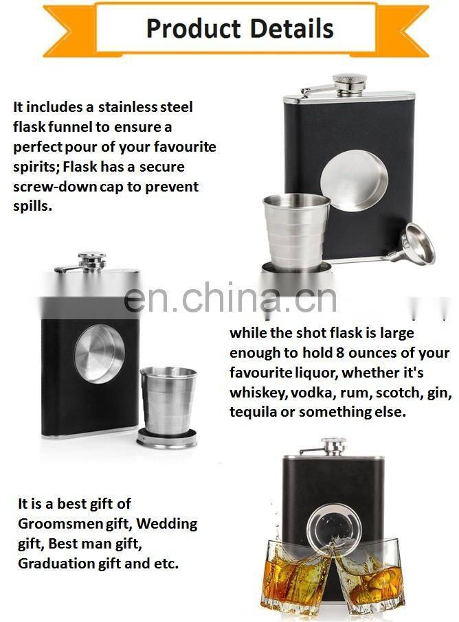 Eco Friendly Water Bottles 304 Stainless Steel Leak Proof Liquor Hip Flask 9 oz Water Flask Bottle With Funnel and Gift BoxNegotiableMOQ: 1