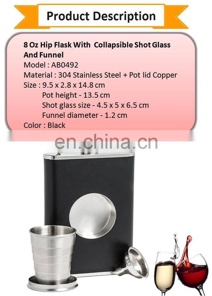 8 Oz Black Color Liquor Hip Flask Set With Collapsible Shot Glass And Funnel,Stainless Steel Copper Hip Flask