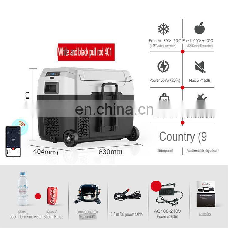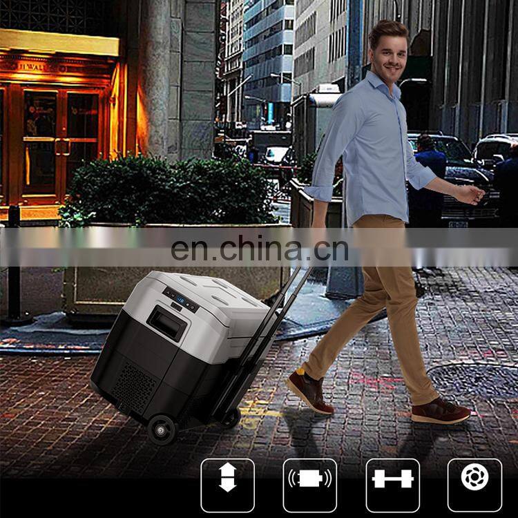 - 45L DC 12V/24V Compressor Fridge Mobile Freezer Refrigerator With Pull Rod & Wheels Car Home Dual Use