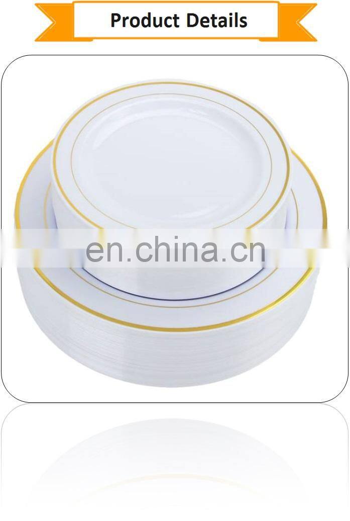 Best Selling 7 / 10 Inch Round Gold Rim Plastic Plate