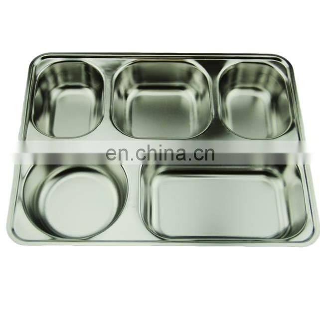 School Mess Stainless Steel Dinner Plate Buffet Tray Lunch Box