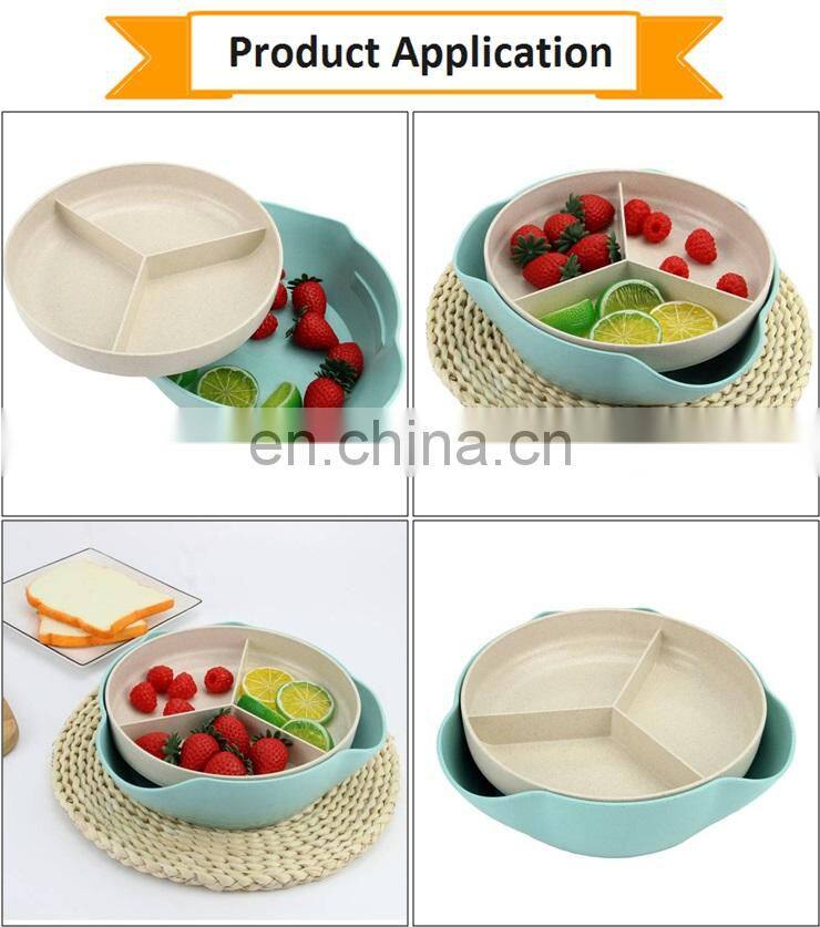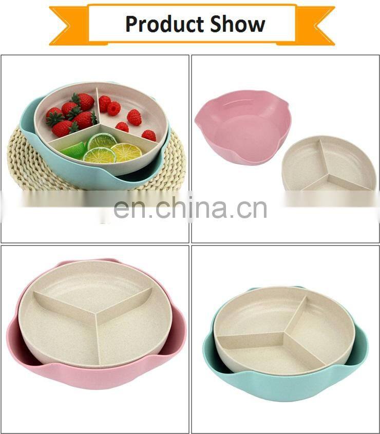 Custom Made Packaging Eco Friendly Wholesale Non Slip Wheat Straw Plastic Divided Baby Plate