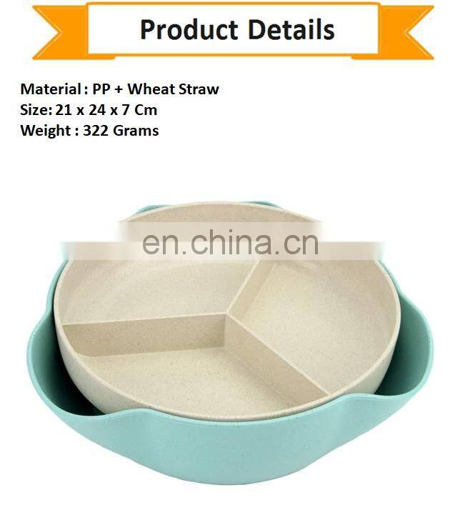 Wheat Straw Double Dish for Pistachios, Peanuts, Nuts, Fruits, Candies, Snacks Plastic Serving Dishes and Bowls