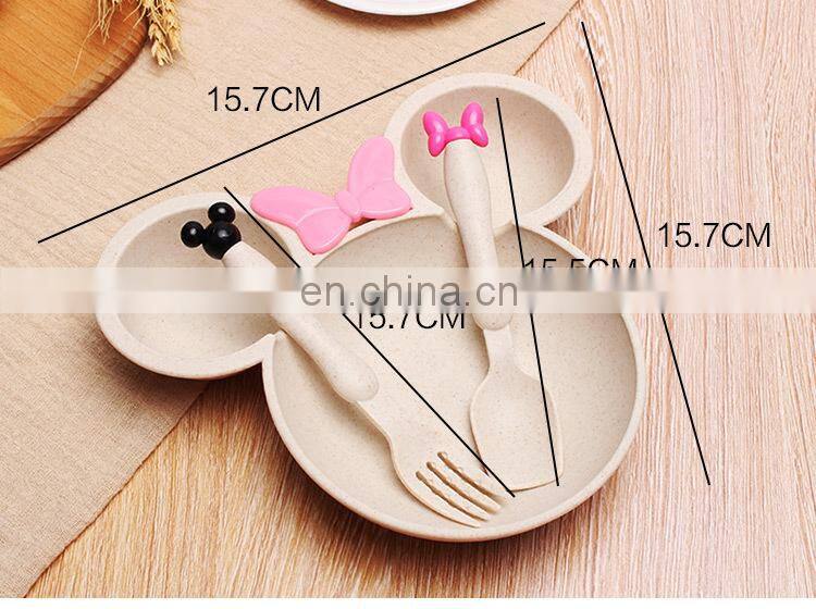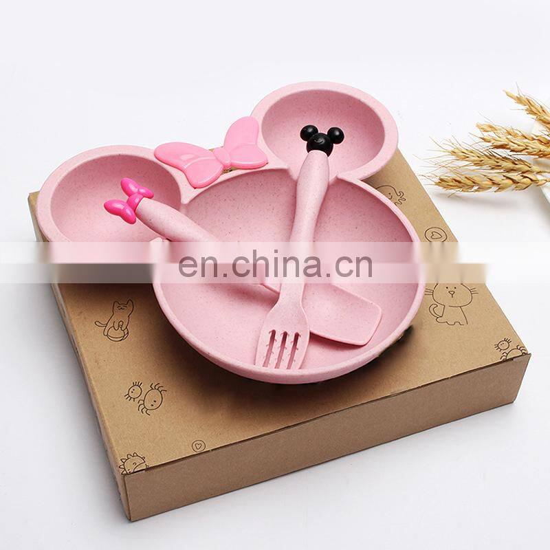 Custom Made Packaging Eco Friendly Wholesale Non Slip Wheat Straw Plastic Divided Baby Plate