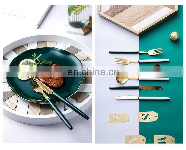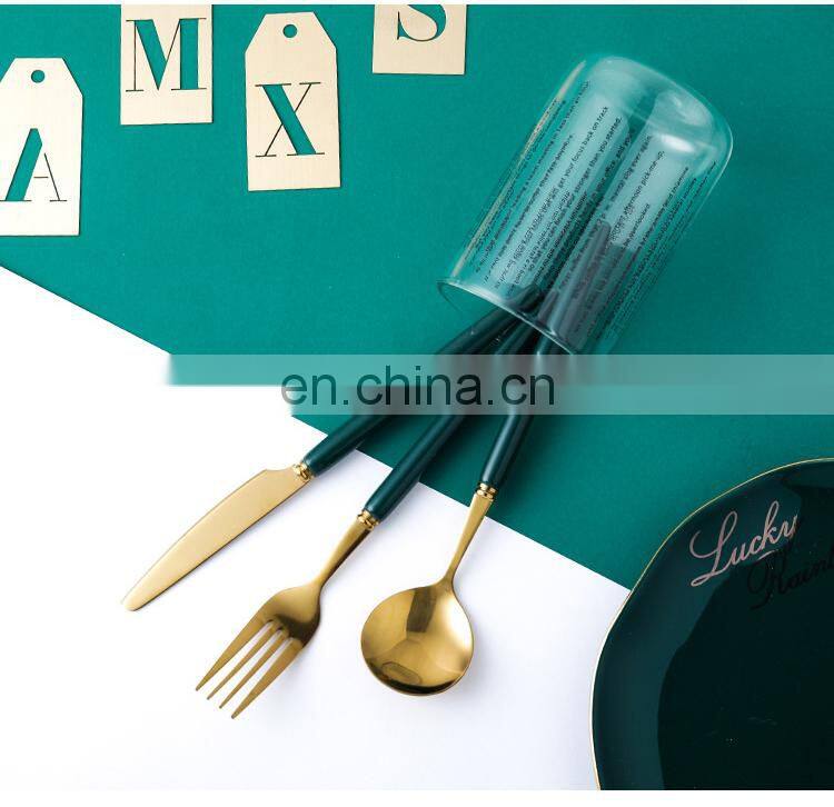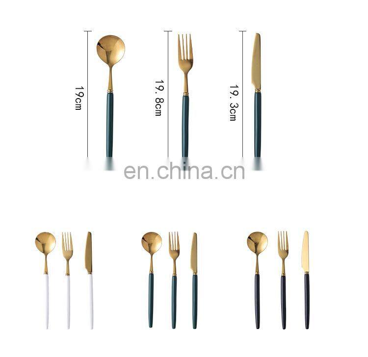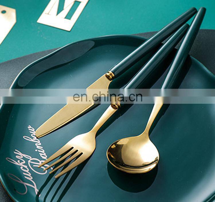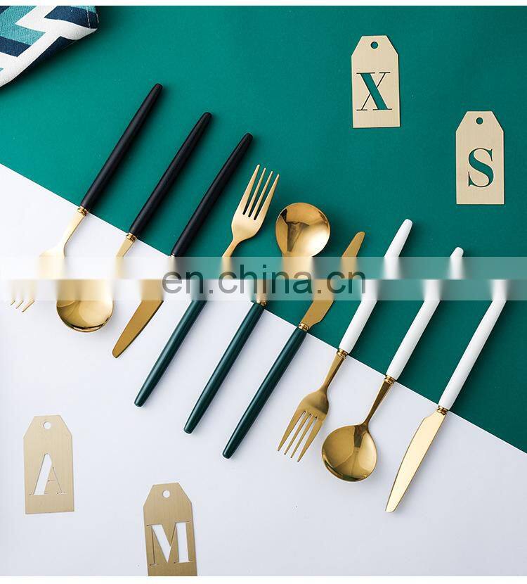 Marble Handle Portable Table Luxury Wedding Cutlery Golden Forks Spoons Stainless Steel Flatware Set