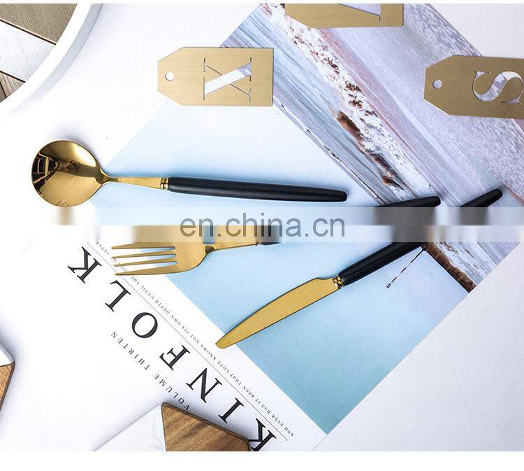 Dining Plastic Handle 5 Pieces Package Stainless Steel Cutlery Set Luxury Gold Flatware Wedding