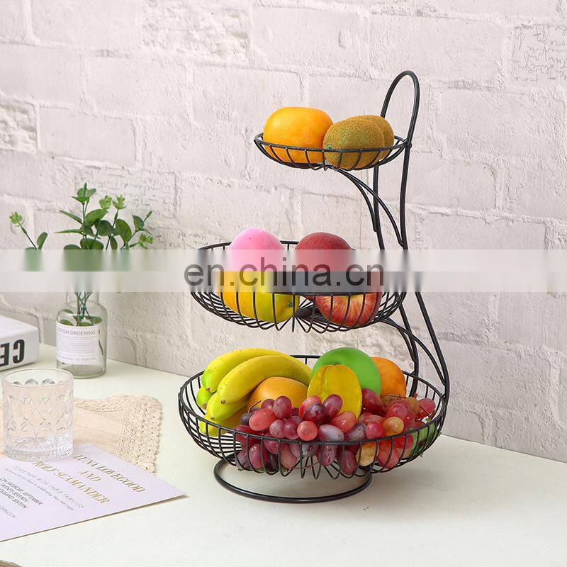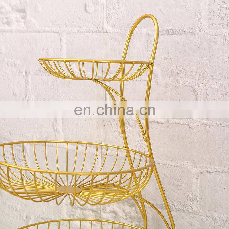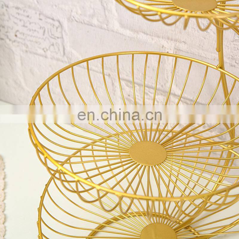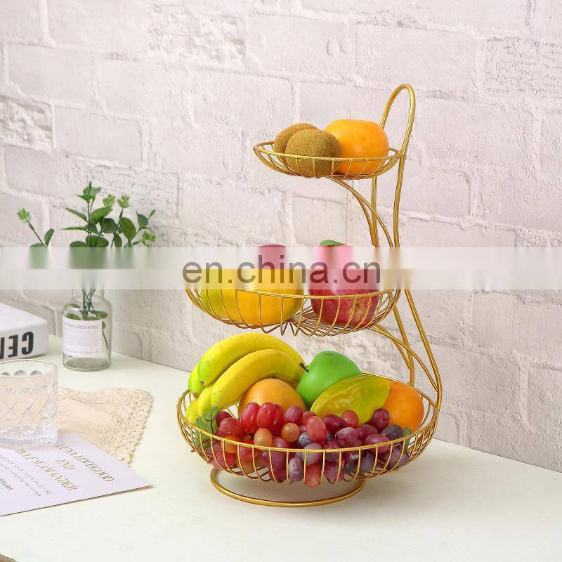 Wedding Durable Layer Storage Rack Kitchen Wire Metal Stackable 3 Vegetables 2 Tier Fruit Basket